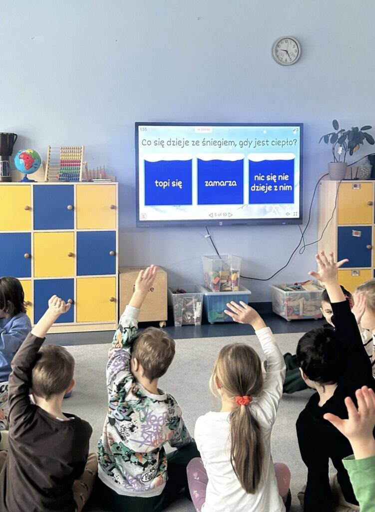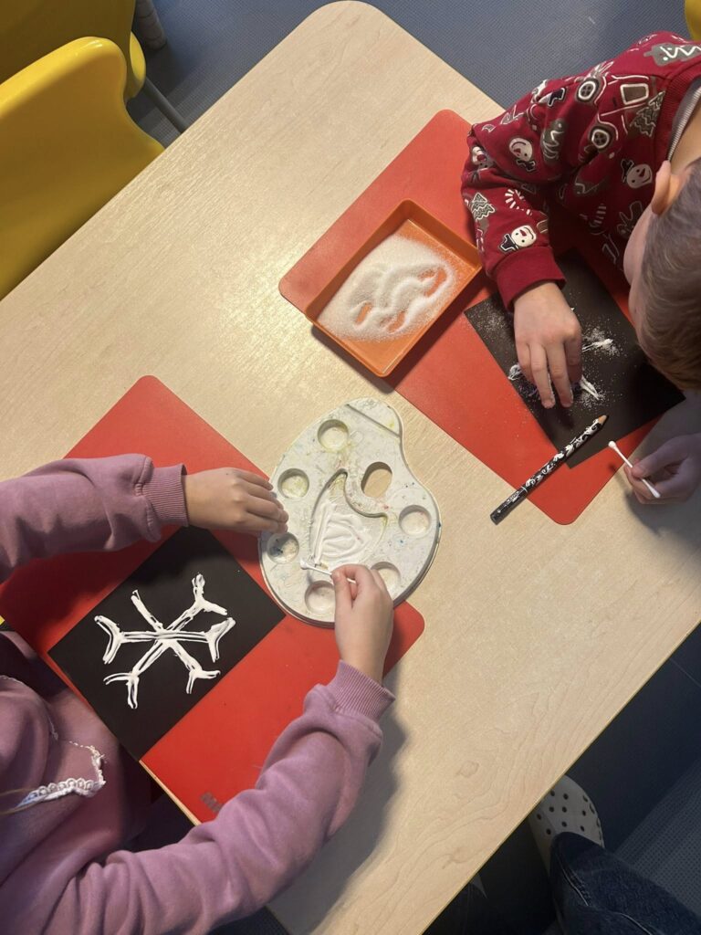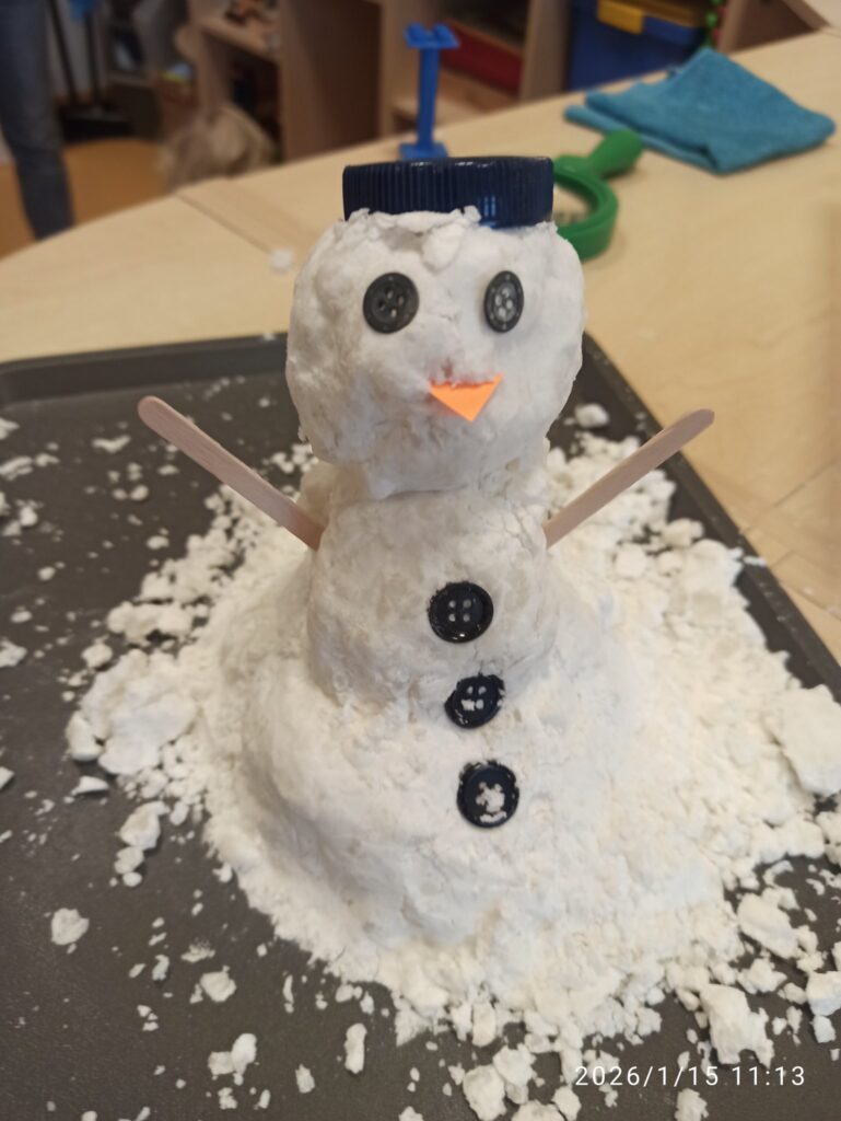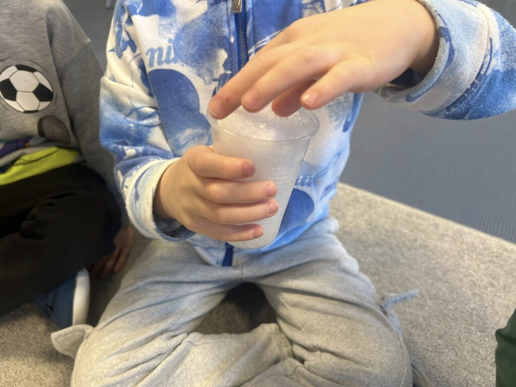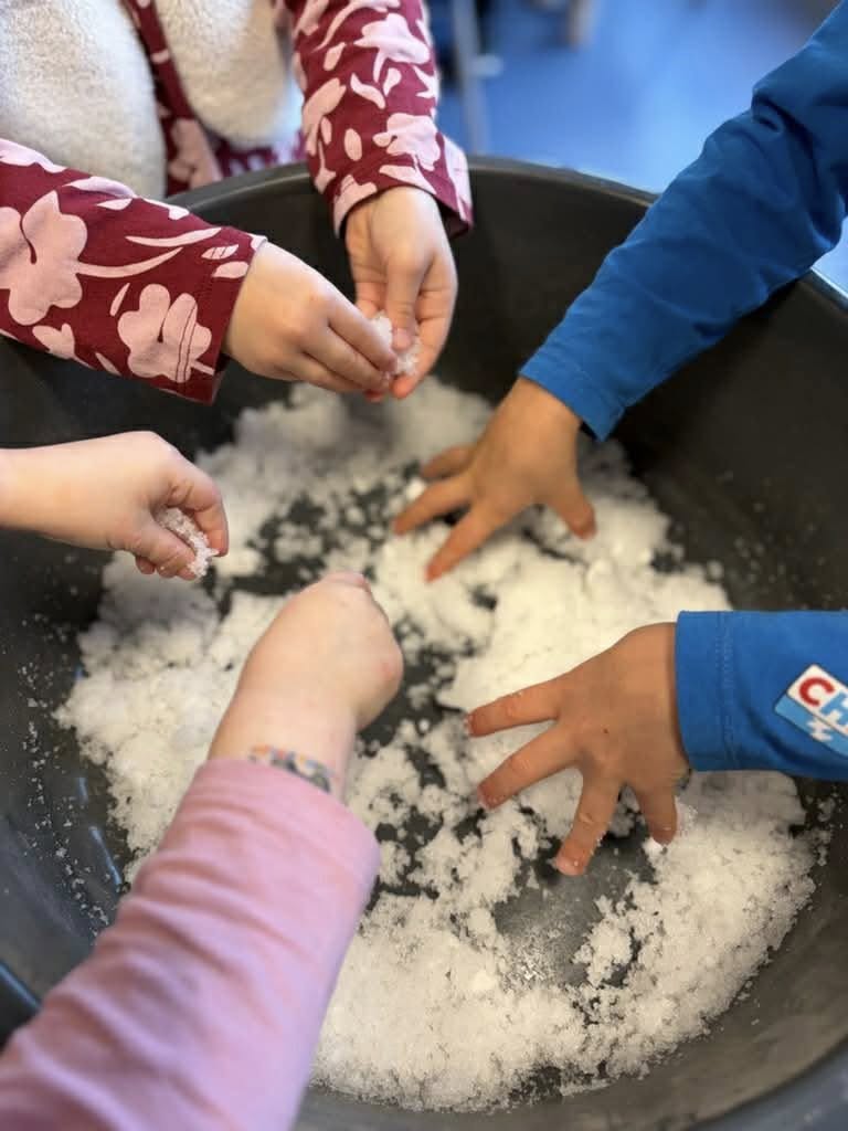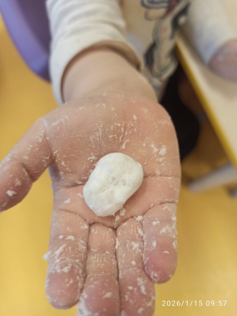 Dzieci miały okazję samodzielnie wykonać sztuczny śnieg, obserwować jego właściwości oraz uczestniczyć w zimowych zabawach sensorycznych☃️.