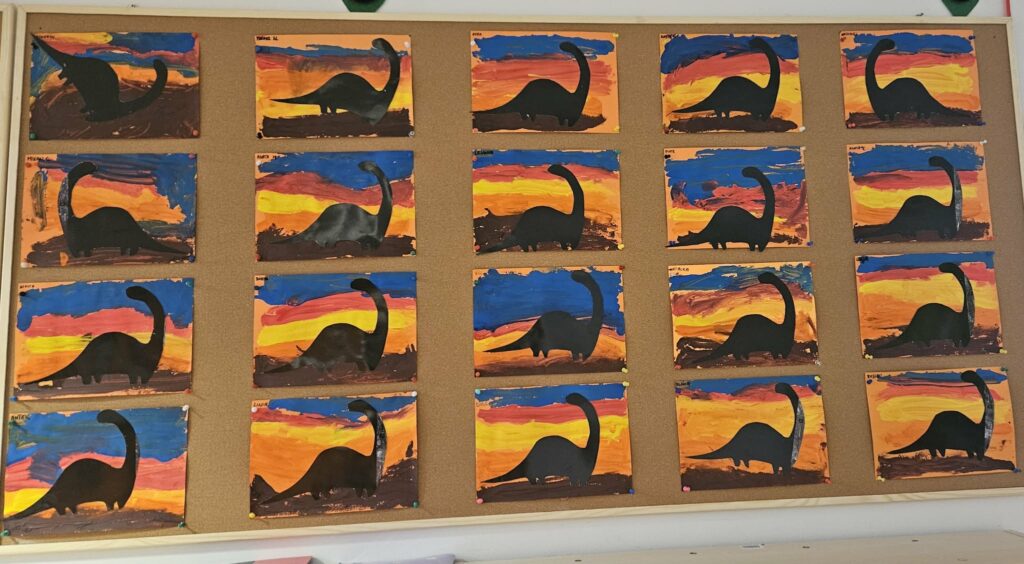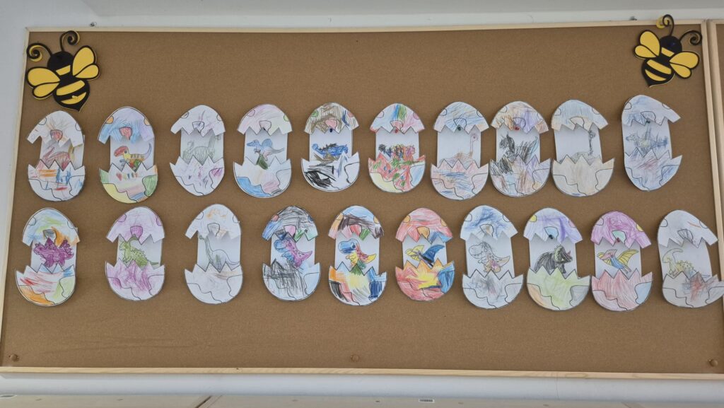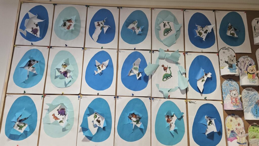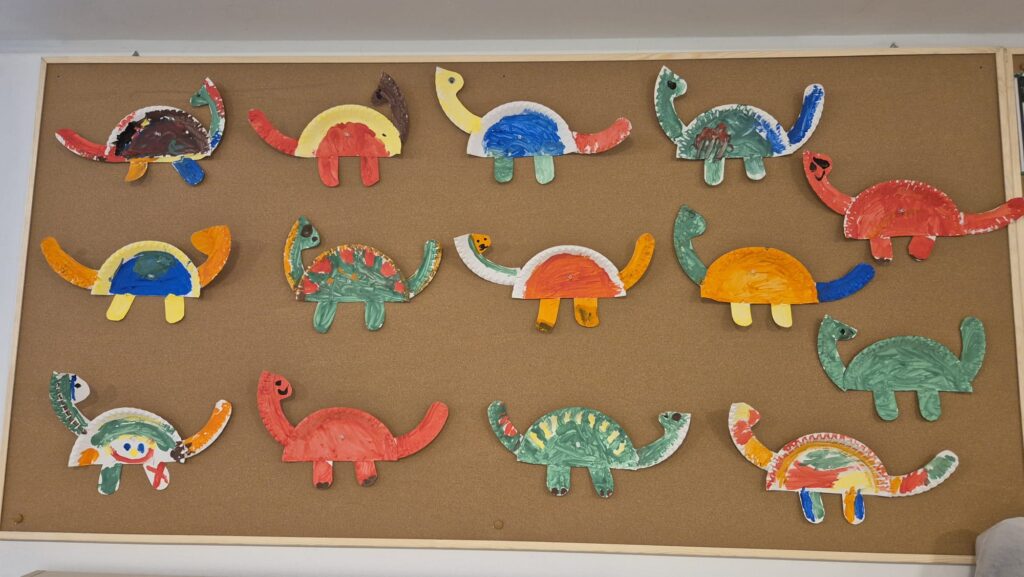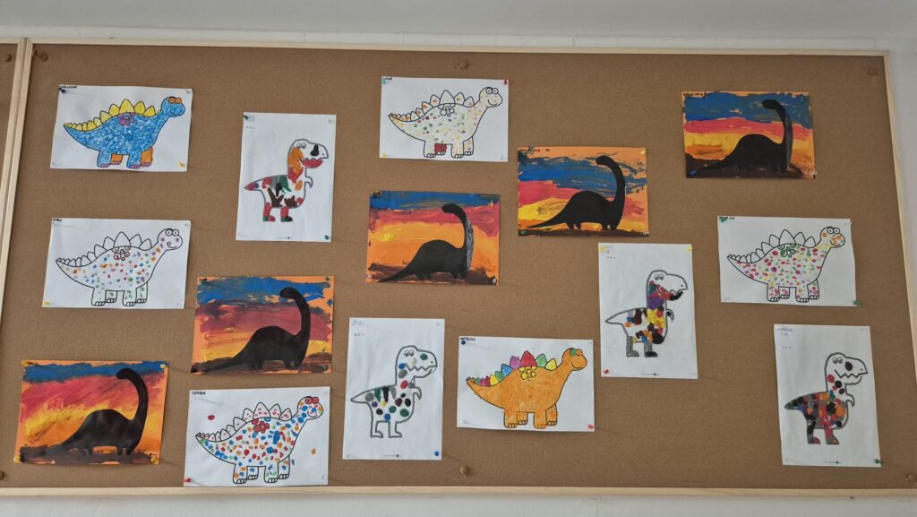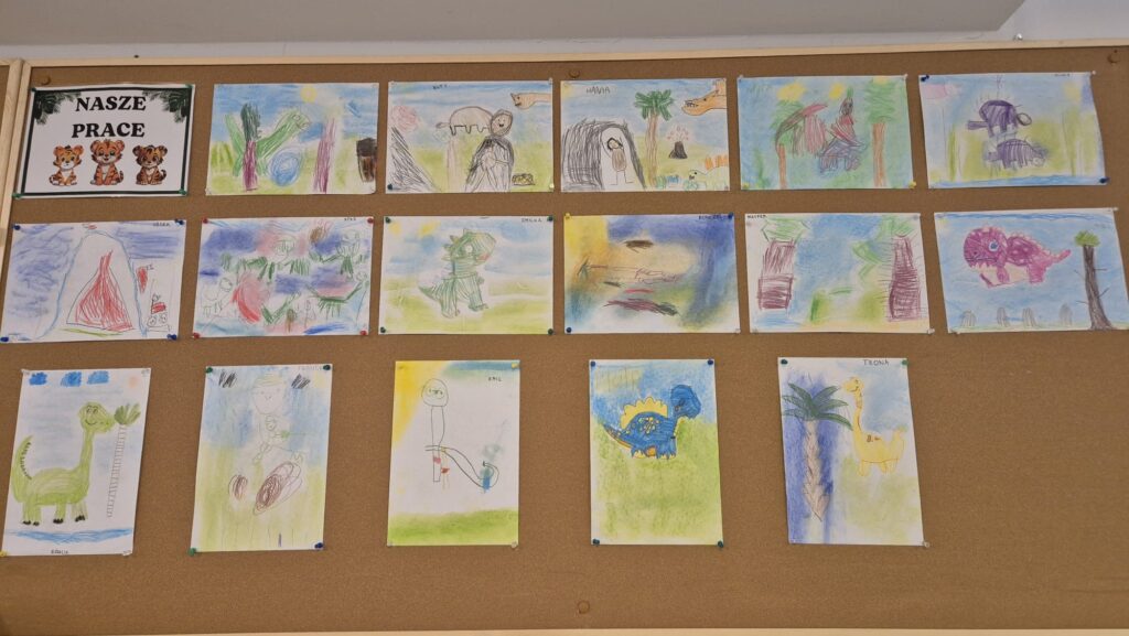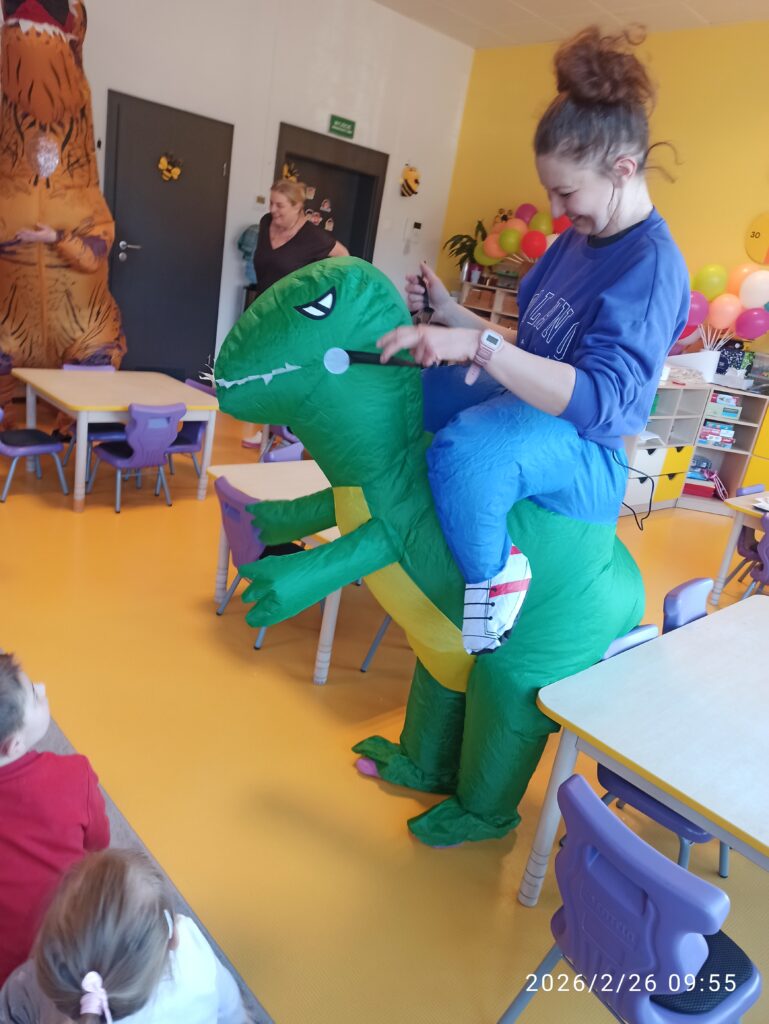 Dziś nasze przedszkole przeniosło się w czasy prehistoryczne! Z okazji Dnia Dinozaura dzieci poznały ciekawostki o tych niezwykłych stworzeniach, oglądały ilustracje oraz brały udział w tematycznych zabawach i pracach plastycznych. Nie zabrakło dinozaurowych tańców, odkryć małych paleontologów i mnóstwa radości. To był dzień pełen przygód i fascynujących odkryć! 🦴✨