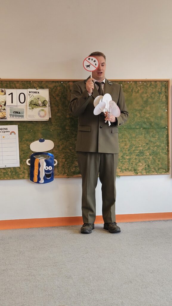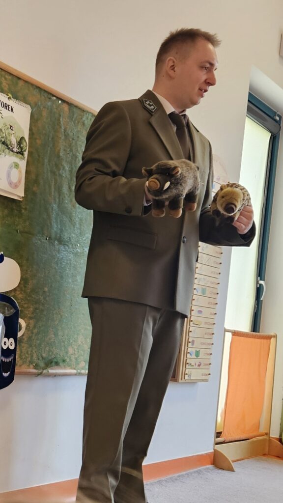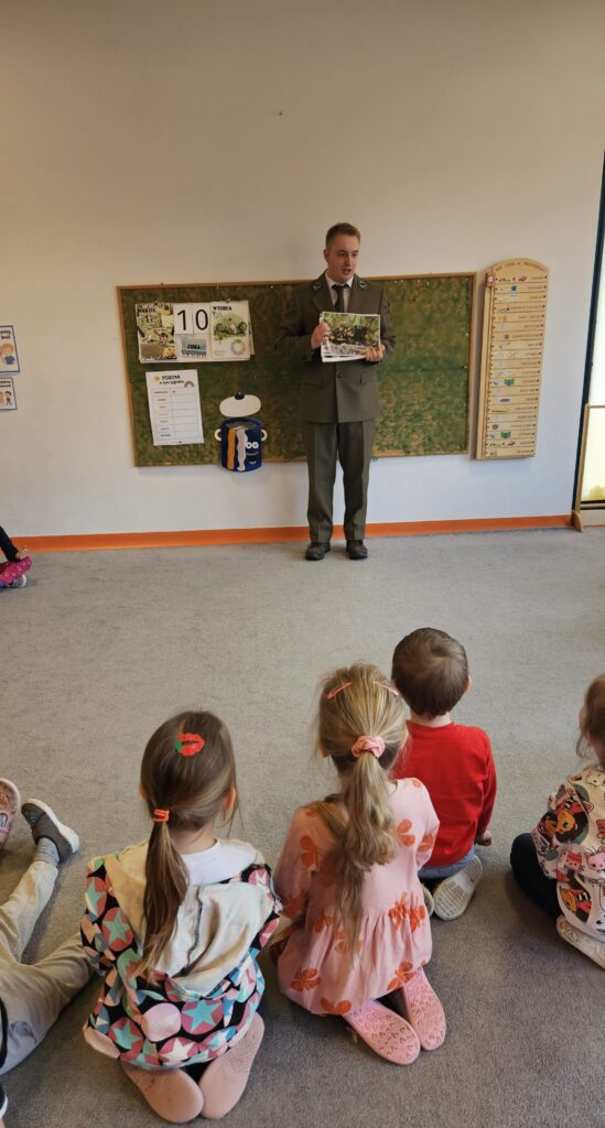 Grupy Pszczółek i Biedronek spotkały się z panem leśnikiem, który opowiedział dzieciom o swojej pracy oraz o życiu zwierząt i roślin w lesie. Przedszkolaki miały okazję poznać wiele ciekawostek przyrodniczych oraz dowiedzieć się, jak należy dbać o las i jego mieszkańców. Spotkanie było bardzo interesujące i dostarczyło dzieciom wielu nowych wiadomości. Dziękujemy za miłą i pouczającą wizytę! 🦌🌿