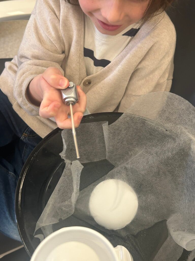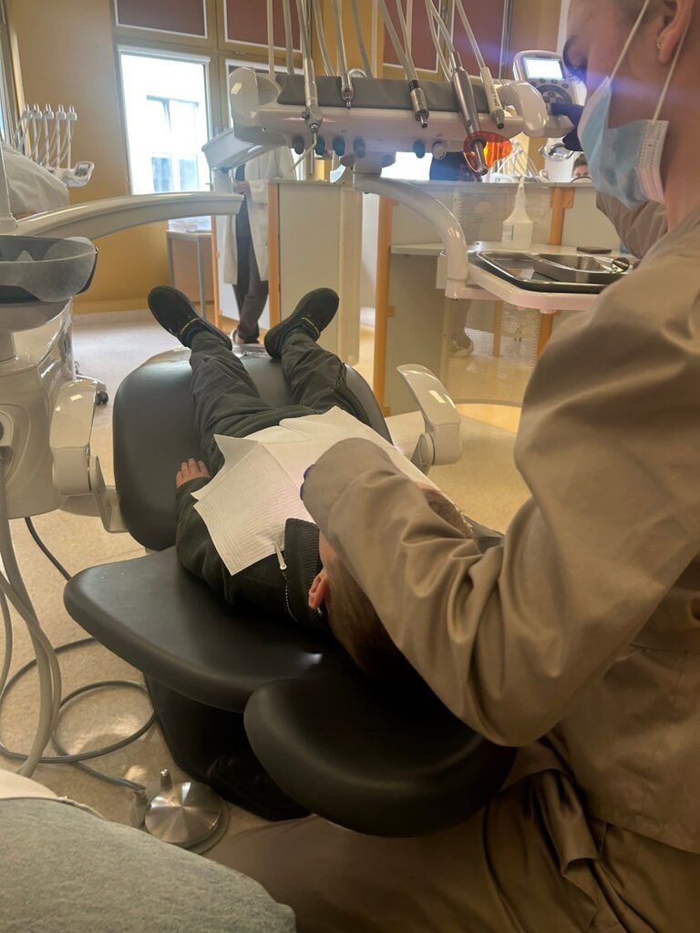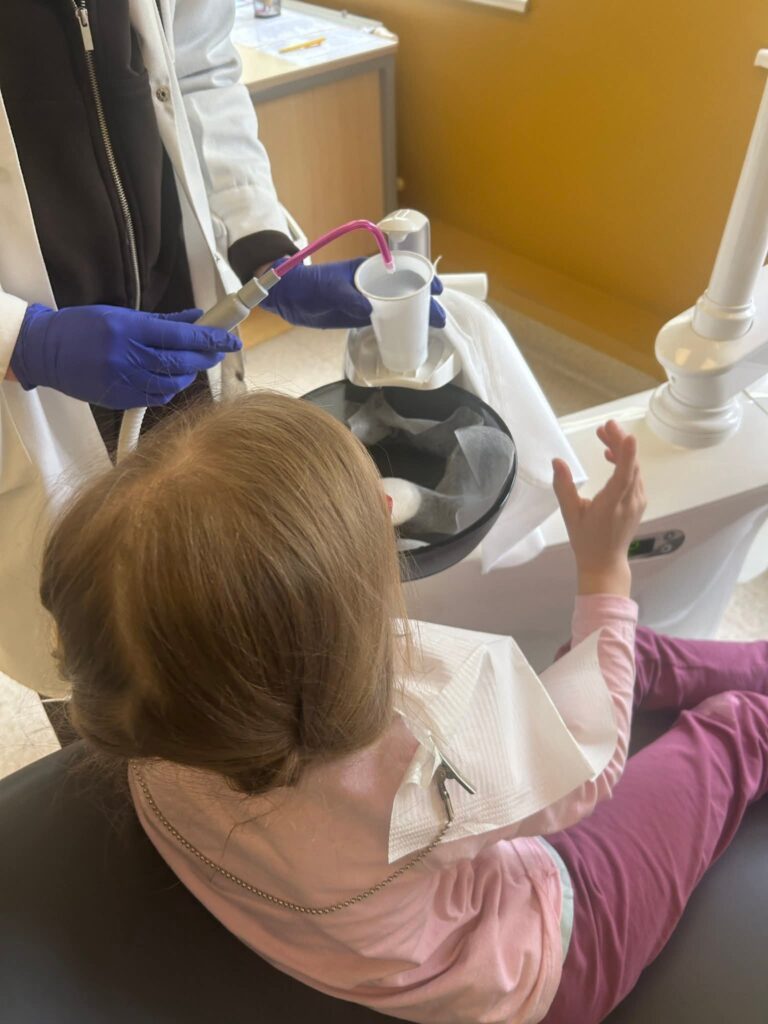 Podczas zajęć przedszkolaki dowiedziały się, jak prawidłowo dbać o zęby i higienę jamy ustnej. Chętne dzieci mogły usiąść na fotelu dentystycznym, zobaczyć sprzęt stomatologiczny oraz przejść krótki przegląd zębów.