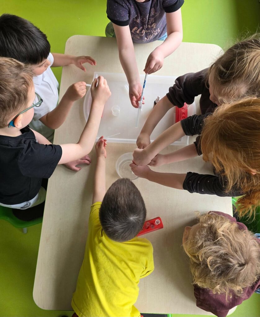 W naszym przedszkolu dzieci zamieniły się w prawdziwych małych detektywów! Podczas zajęć wykonywały różne doświadczenia i eksperymenty, obserwując ciekawe zjawiska oraz próbując samodzielnie znaleźć odpowiedzi na nurtujące pytania. Przedszkolaki z wielkim zaangażowaniem odkrywały świat poprzez zabawę, rozwijając swoją ciekawość i umiejętność obserwacji. To była wspaniała naukowa przygoda! 🧪✨