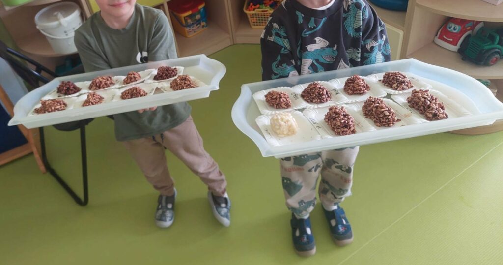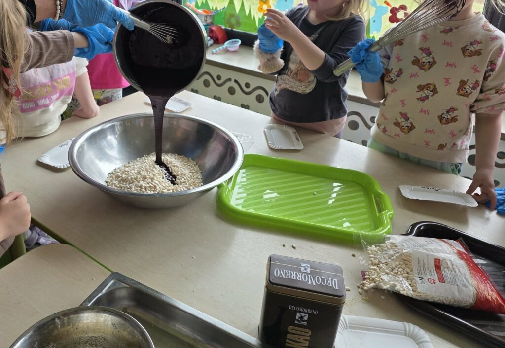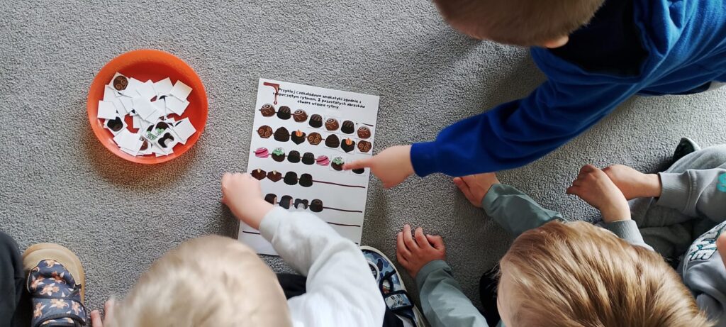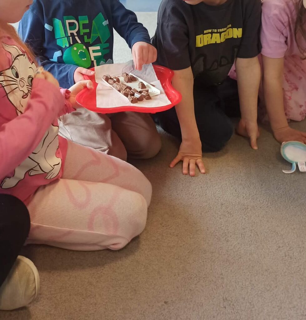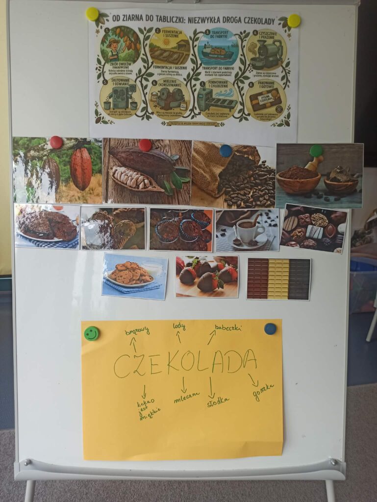 Dzieci poznały, jak powstaje czekolada oraz jakie są jej rodzaje. Nie zabrakło tematycznych zabaw, prac plastycznych i oczywiście słodkich chwil.