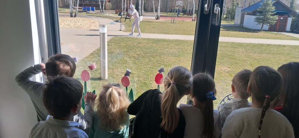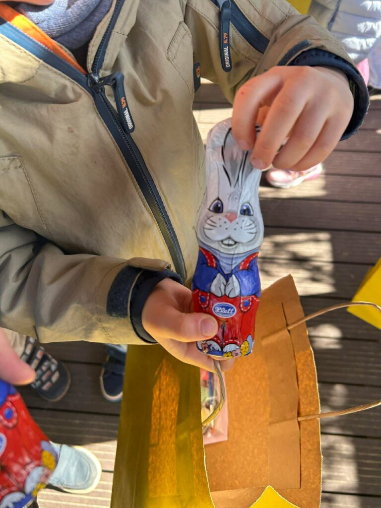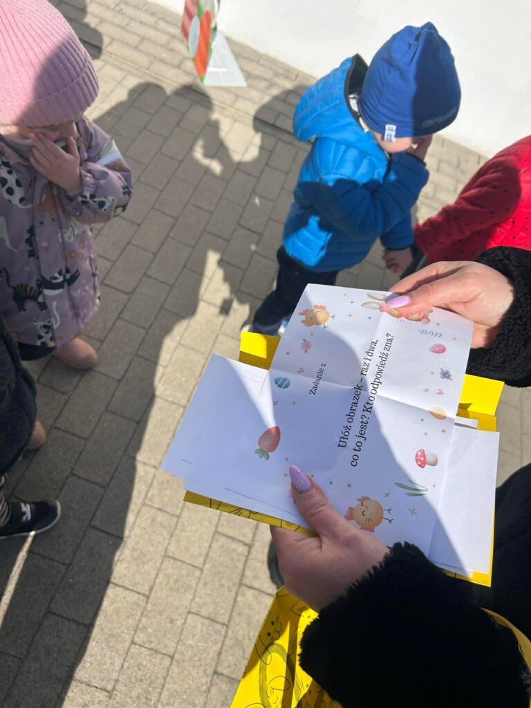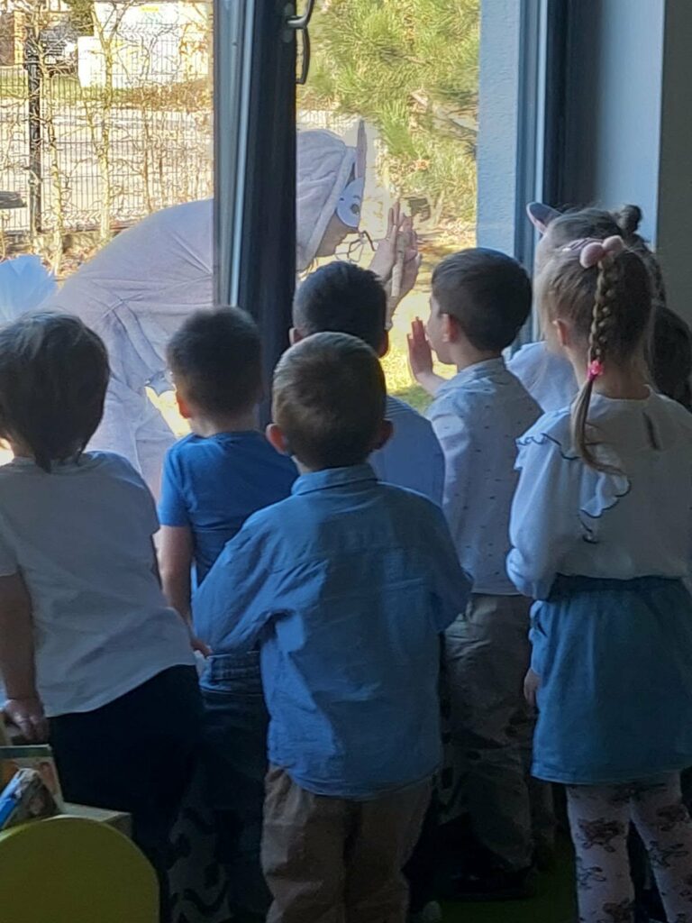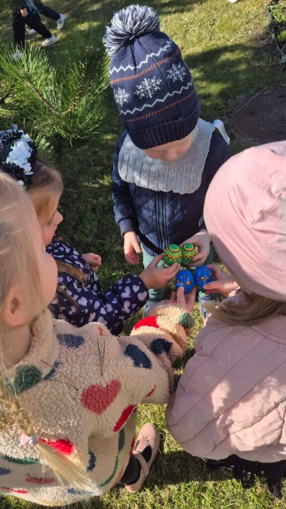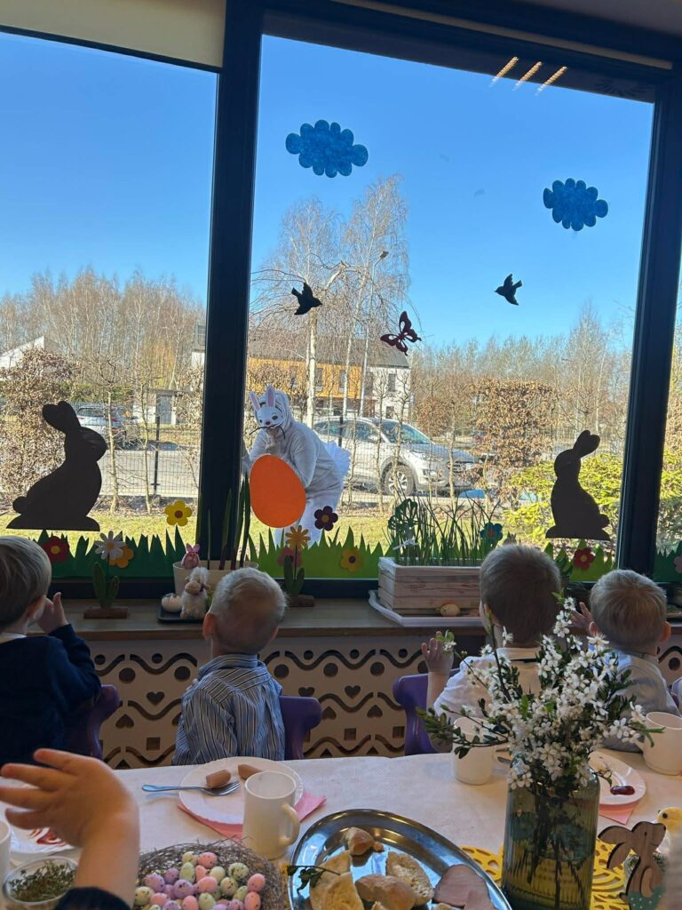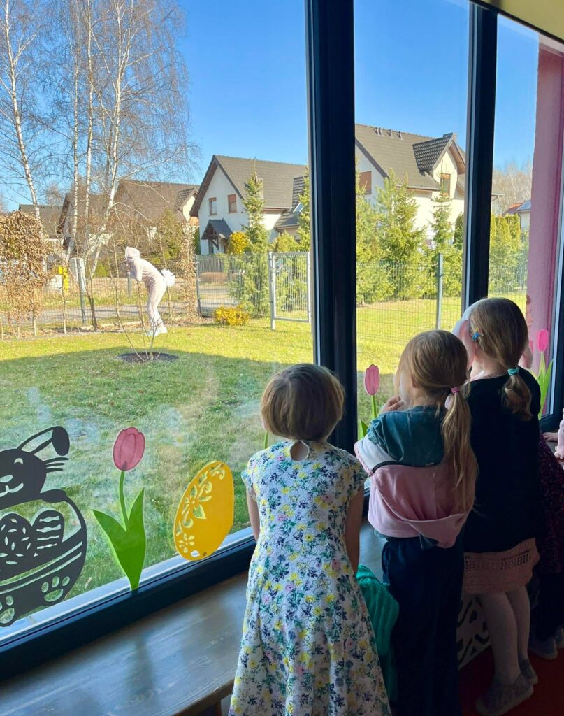 Czwartek był dniem, którego od dawna wyczekiwały nasze przedszkolaki. O godzinie 9.00 wszystkie dzieci zasiadły do obfitego śniadania wielkanocnego, a następnie do naszego przedszkola zawitał wyjątkowy gość – wielkanocny zajączek 🐰, który zostawił dzieciom tajemniczy list. Przedszkolaki z ogromnym zaangażowaniem szukały wskazówek w ogrodzie oraz wykonywały przygotowane przez niego zadania. Na zakończenie każda grupa odnalazła ukryty prezent! 🎁 🐣